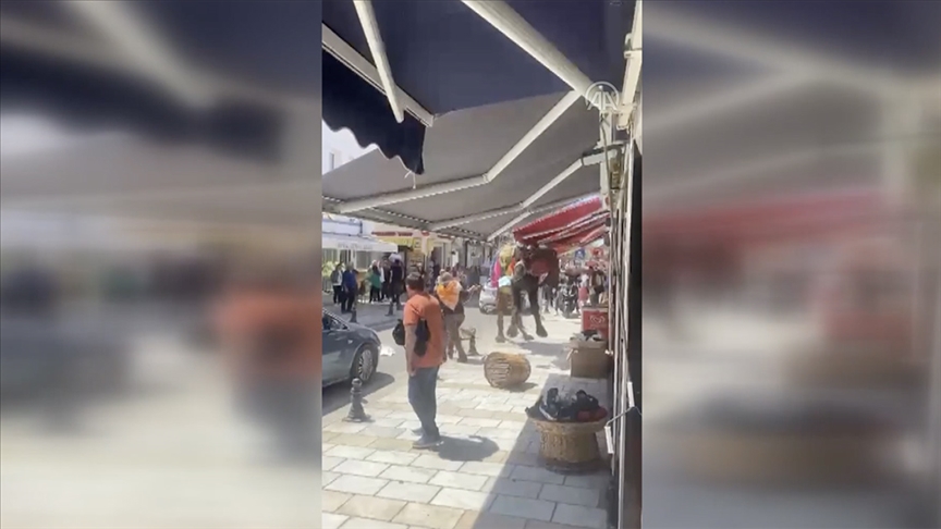 Bodrum'da caddede otomobilden ürken devenin çevreye yaşattığı panik anları kameraya yansıdı