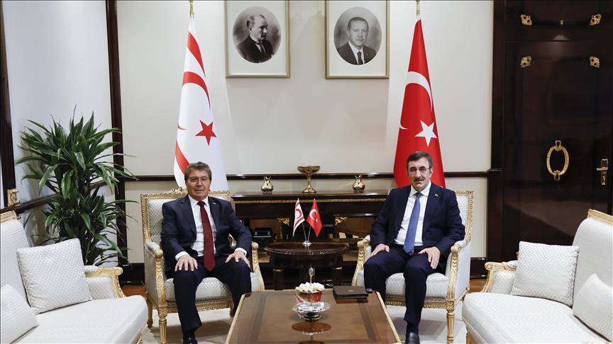 <br>Cumhurbaşkanı Yardımcısı Cevdet Yılmaz, Kuzey Kıbrıs Türk Cumhuriyeti (KKTC) Başbakanı Ünal Üstel ile bir araya geldi.