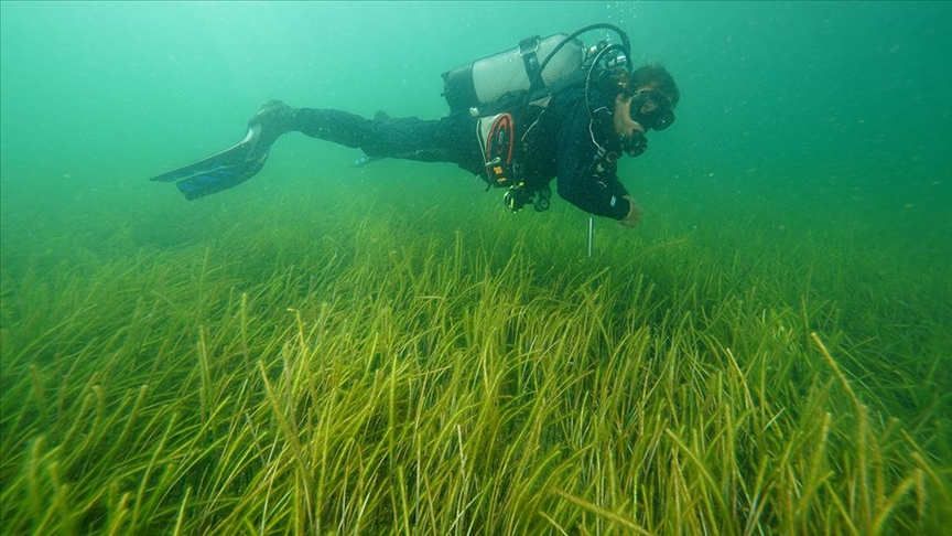 <br>Kocaeli'nin Karamürsel ilçesi açıklarında İzmit Körfezi'nin derinliklerinde bulunan deniz çayırları kayda alındı.