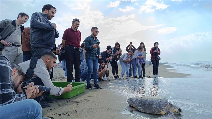 Hatay'da tedavisi tamamlanan caretta caretta denize bırakıldı